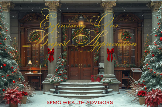 Evergreen Wreath & Flowers Happy Holidays